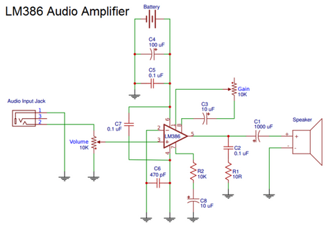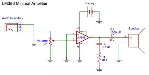Now that you’ve seen the bare minimum of what it takes to make an audio amplifier with the LM386, lets build a higher fidelity version with an adjustable gain control.
