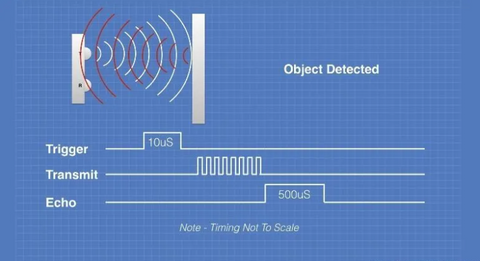 - The eight ultrasonic pulses travel through the air away from the transmitter. Meanwhile the Echo pin goes high to start forming the beginning of the echo-back signal.