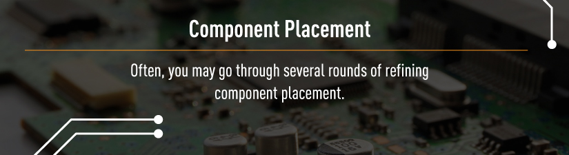 The next step is component placement, which determines where you will place each element on the board. Often, you may go through several rounds of refining component placement.