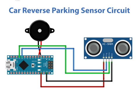 The main parts of the circuit are Arduino nano and ultrasonic sensor HC-SR04. Here the HC-SR04 has two modules, including an ultrasonic transmitter, receiver, and inbuilt control circuit. This sensor gives signals when it detects an object. It sends eight 40 kHz signals and detects whether there is a pulse signal back, if any signal back presents this sensor gives a high level out. Here connect the +5V supply from the Arduino nano board to the +Vcc of the ultrasonic sensor, connect Gnd to Gnd of the ultrasonic sensor, and after that connect the trig pin to D8 and Echo pin to D9 of Arduino nano. As per the circuit and Arduino code, connect the buzzer to D2 and GND. For uploading the Arduino sketch, use a separate 9V battery to power the Arduino board through the Vin pin. This circuit gives output through the buzzer, if any object detects near the car it makes a sound. Enclose all the elements with a suitable plastic case, and make it open to the ultrasonic sensor modules and buzzer. Attach the plastic case to the center part of the vehicle.