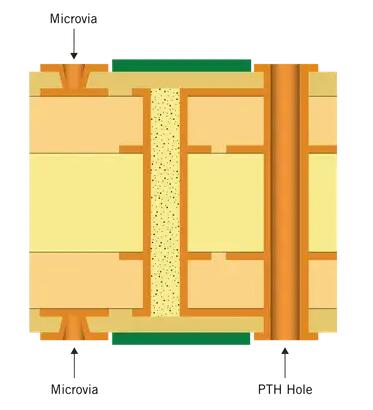 PCB designers have many options for drilling microvias. Each microvia is the same in size. Their placement is the main difference.