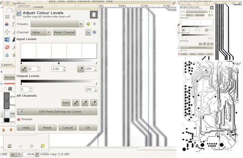 At a higher level of complexity, as on the board shown in this project, I decided there were too many tracks for hand tracing to be reliable, and used the graphical techniques described. These methods arise partly from the photographs I took being too unevenly lit and inadequately sharp. Better photos means less work.