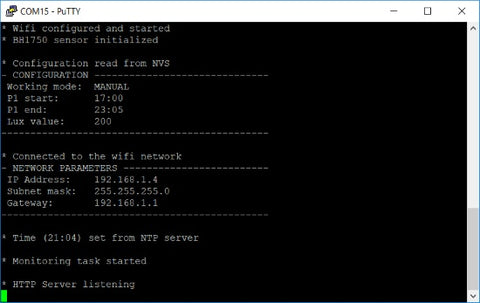 ESP32light provides an HTTP interface through which it is possible to enter programming (hourly or based on a light intensity threshold) or manually control the switching on and off of the load connected to the control unit.