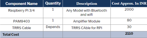The RPi board that we have used here takes the audio from the Bluetooth audio source and then sinks (transfers) it into its own analogue out pin that is the TRRS pin. The audio coming out of the TRRS pin is weak and not audible. So, we need to amplify that sound signal. Here we have used a PAM amplifier module that amplifies the signal. We take the audio output of the Raspberry Pi using an aux cable and then connect it to the PAM amplifier’s audio input pins. This results in an amplified sound over RPi’s output pins.