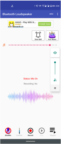 - Takes audio from your phone mic and plays it directly on the speaker.Here your phone acts as a wireless Bluetooth mic and Raspberry Pi as a wireless speaker.