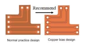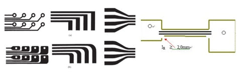 2.b) Additional protection copper wires are added to the two sides of the line. If the space is insufficient, choose the inner R corner of the bent part.