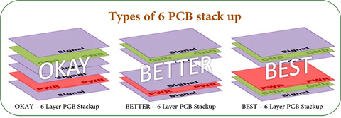 3 Types of 6 Layer PCB Stackup, the right one is best.