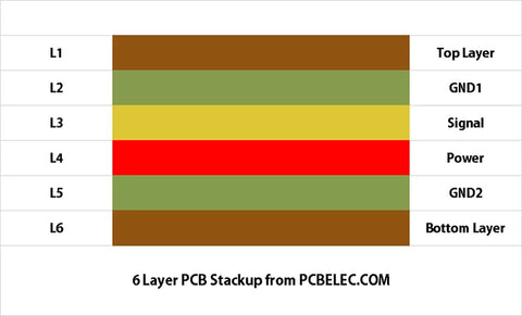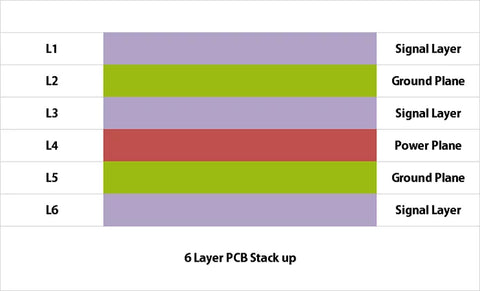 In this 6 layer PCB stack-up is the signal layers are reduced to 3 to add a ground layer: