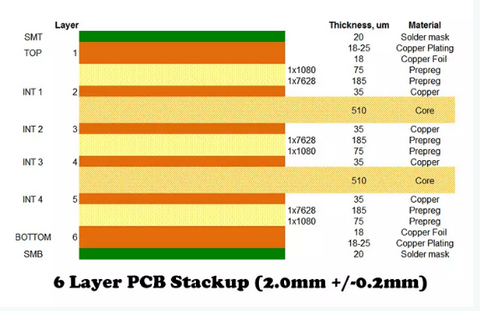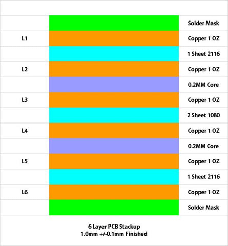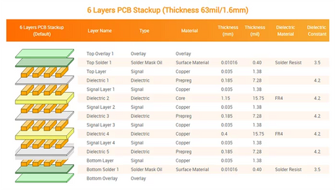 The following is a set of typical 6-layer PCB circuit board stacks for reference.