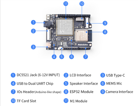 USB Type-C cable. Maixduino includes multiple peripherals for stan-
